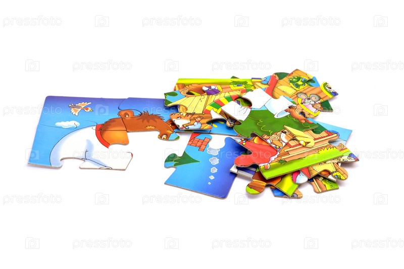 Детский картонный пазл на белом фоне