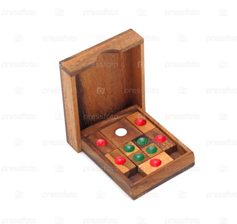 Деревянная логическая игра на белом фоне