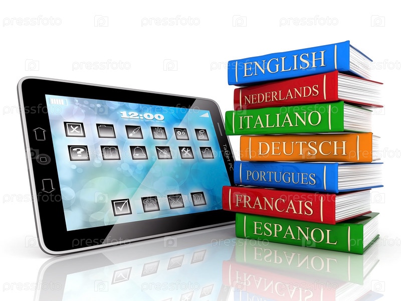 Планшетный компьютер и учебники разных языков