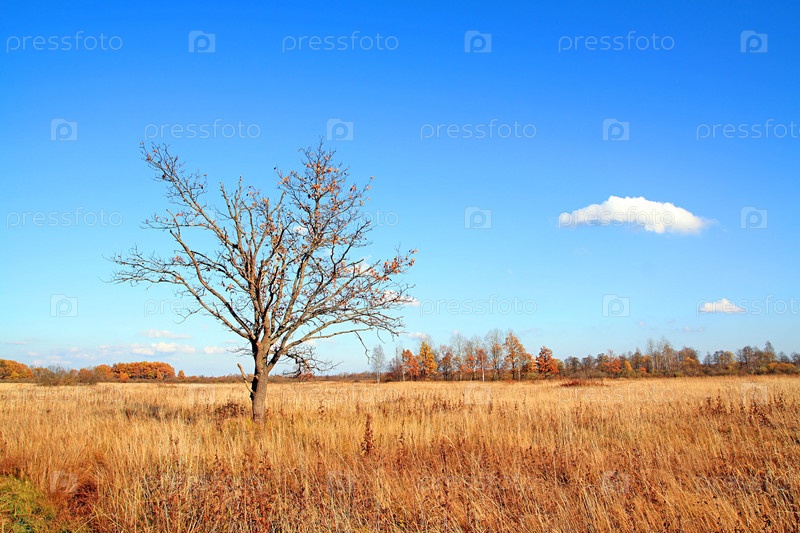 Дуб на осеннем поле