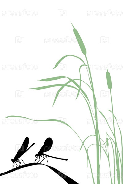 Стрекозы на траве