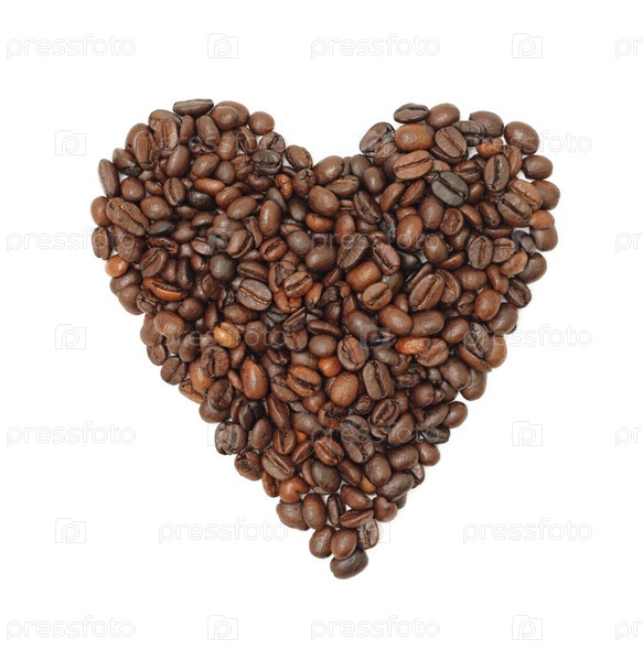 Сердце из кофейных зерен на белом фоне