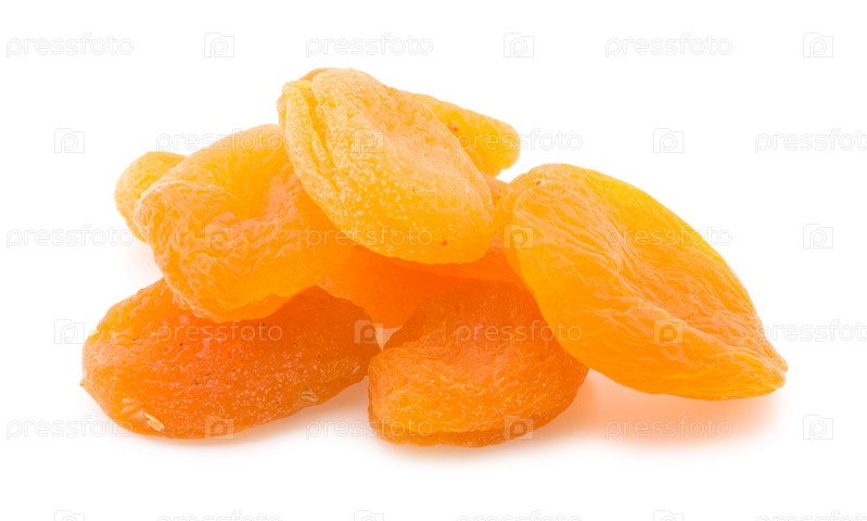 Некоторые сушеные абрикосы на белом фоне