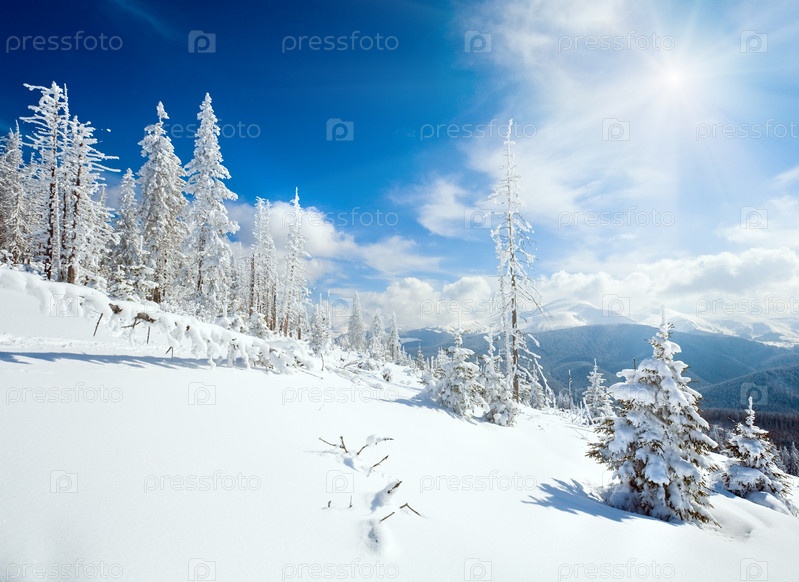 Горная местность с лесом зимой