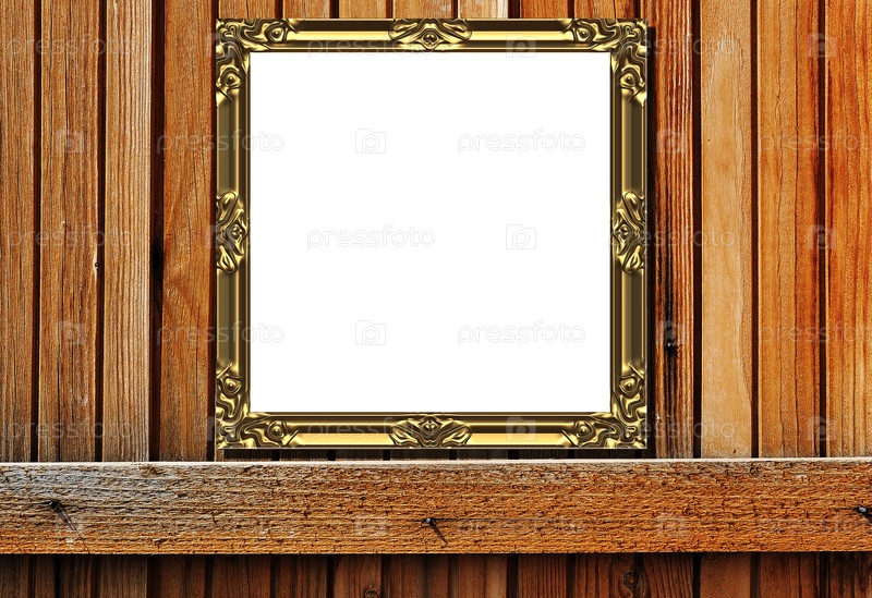Золотая рамка на фоне деревянной стены