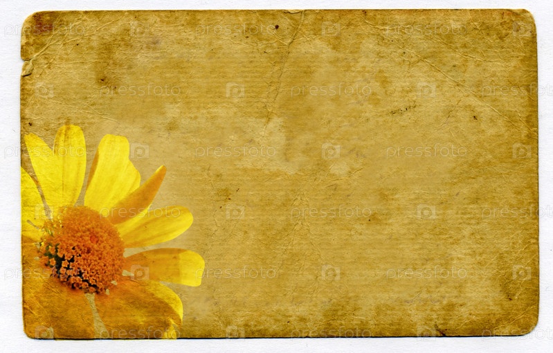 Старый картонный лист с изображением цветка в углу, фон