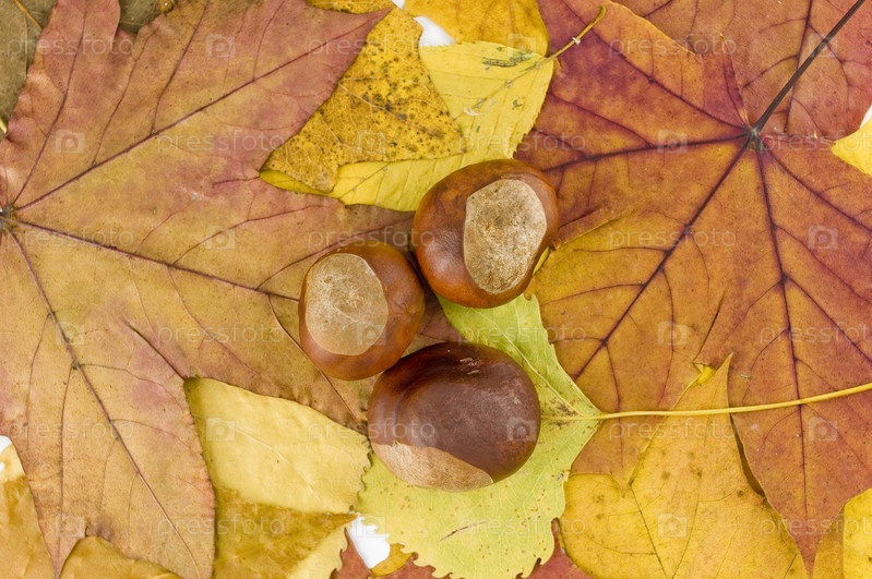 Три орешка на ярких осенних листьях