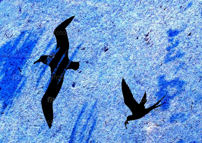 Птицы на синем фоне