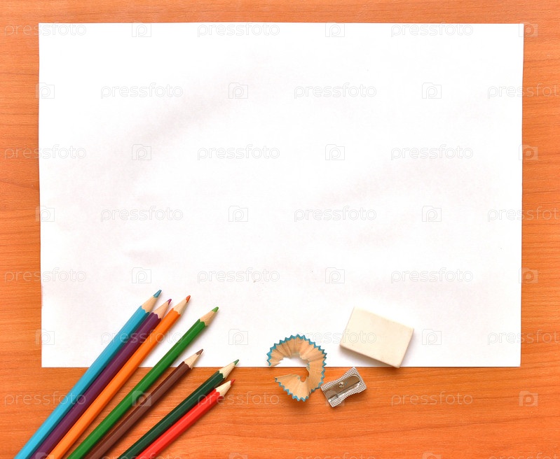 Листок и цветные карандаши