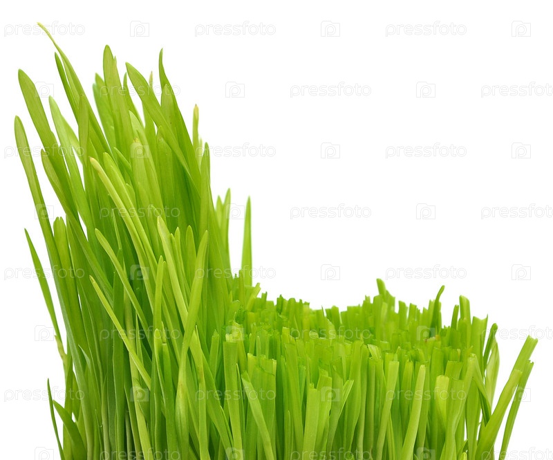 Зеленая трава на белом фоне