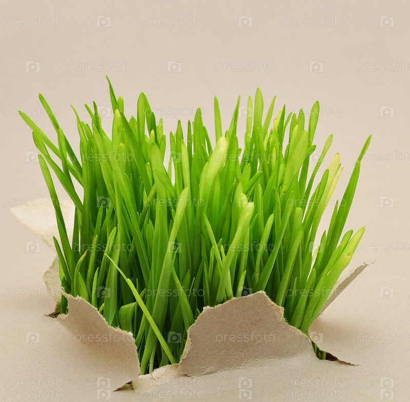 Зеленая трава в отверстии на белом фоне