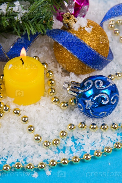 Новогодние украшения на искусственном снегу