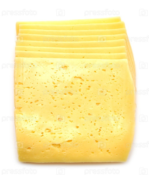 Стопка тонких кусочков сыра на белом фоне