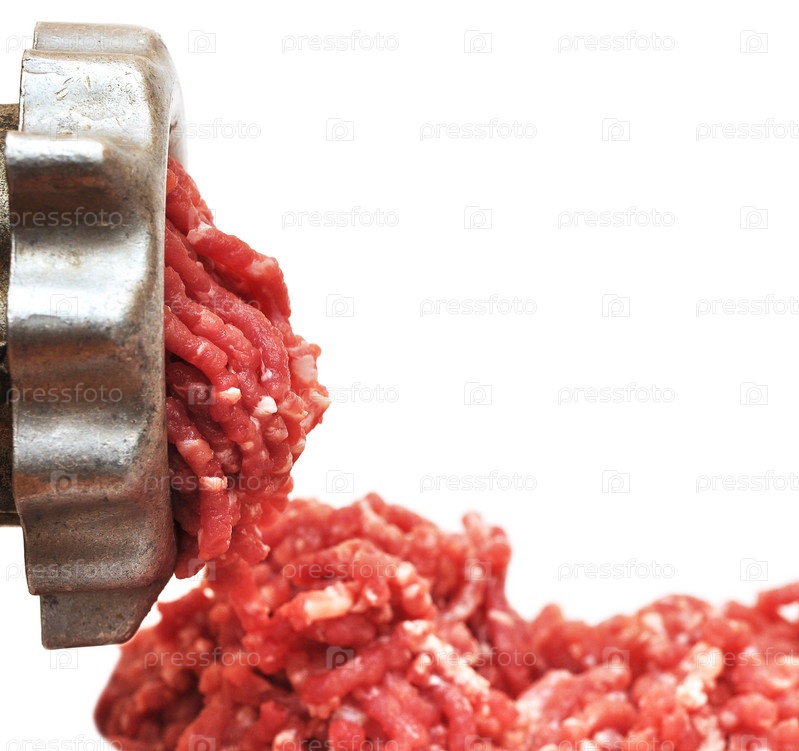 Старая мясорубка в действии на белом