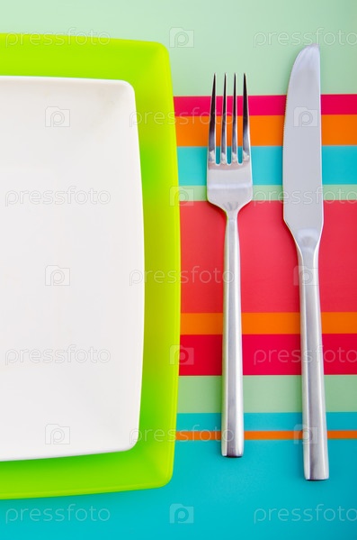 Тарелка со столовыми приборами