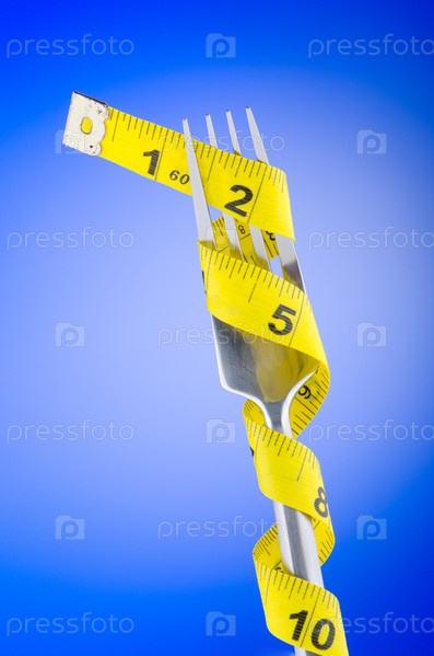 Концепция диеты. Вилка с сантиметром