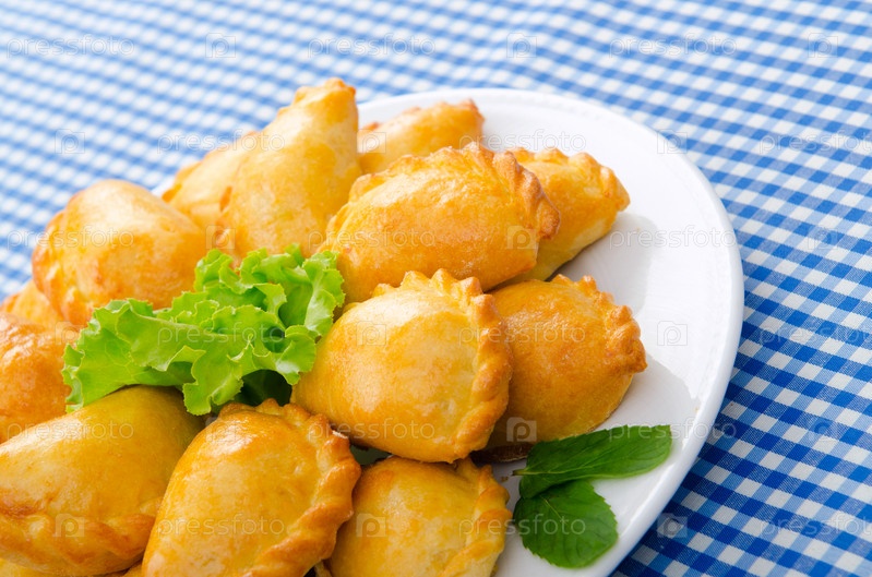 Пирожки с мясом на белой тарелке