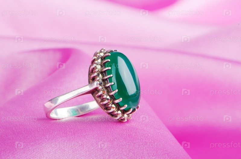 Кольцо с драгоценными камнями на сатиновом полотне