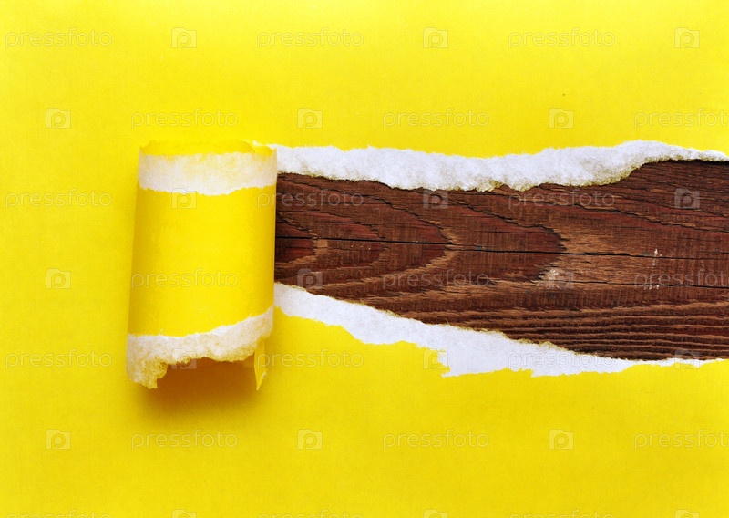 Желтая рваная бумага на деревянном фоне
