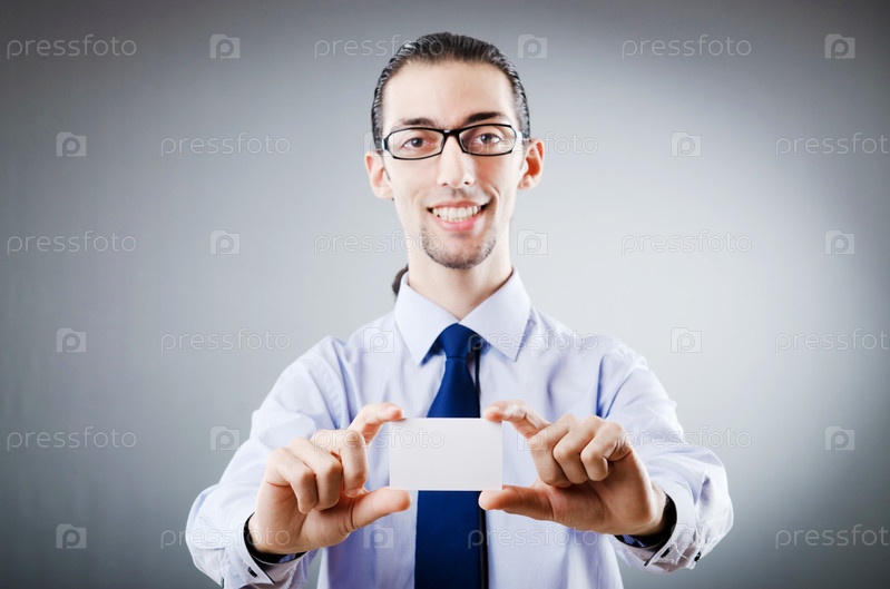 Бизнесмен с пустой карточкой в руках