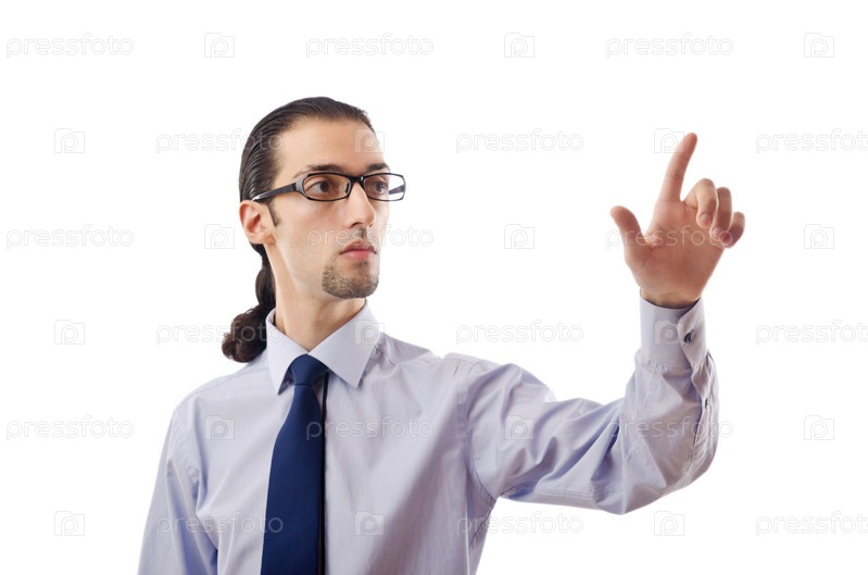 Бизнесмен нажимает на виртуальную кнопку