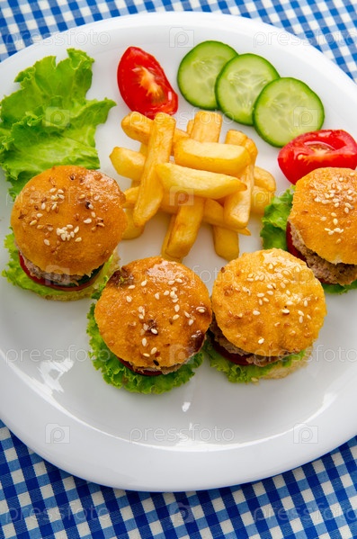 Бургеры с картофелем фри на тарелке