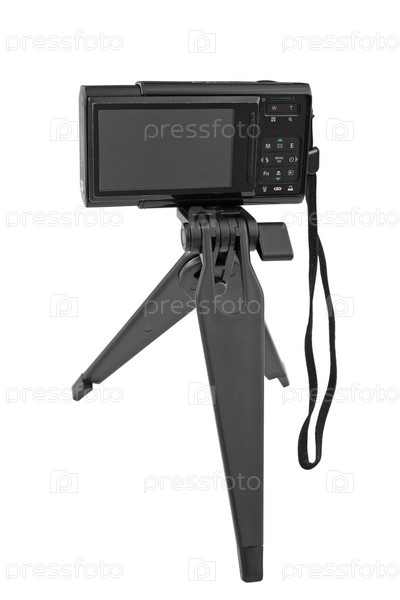 Видеокамера на штативе. Близкий план. Изолированный на белом фоне