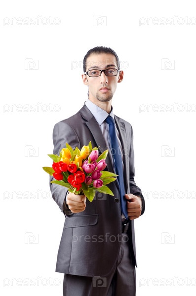 Бизнесмен дарит тюльпаны
