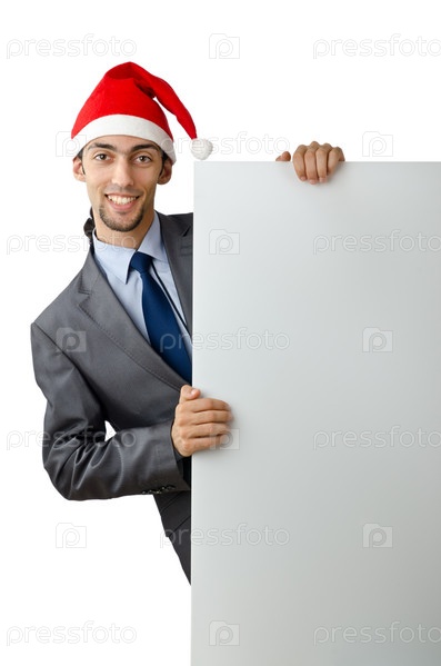Бизнесмен в колпаке Санта Клауса с листом для сообщения