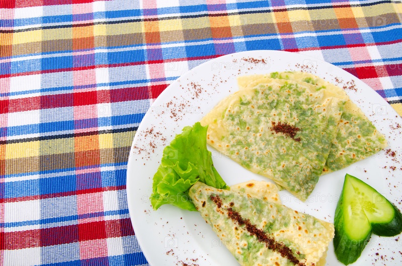 Блинчики приправленные травой на тарелке