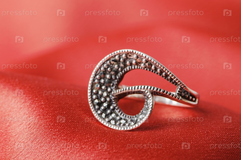 Кольцо на фоне красного шелка