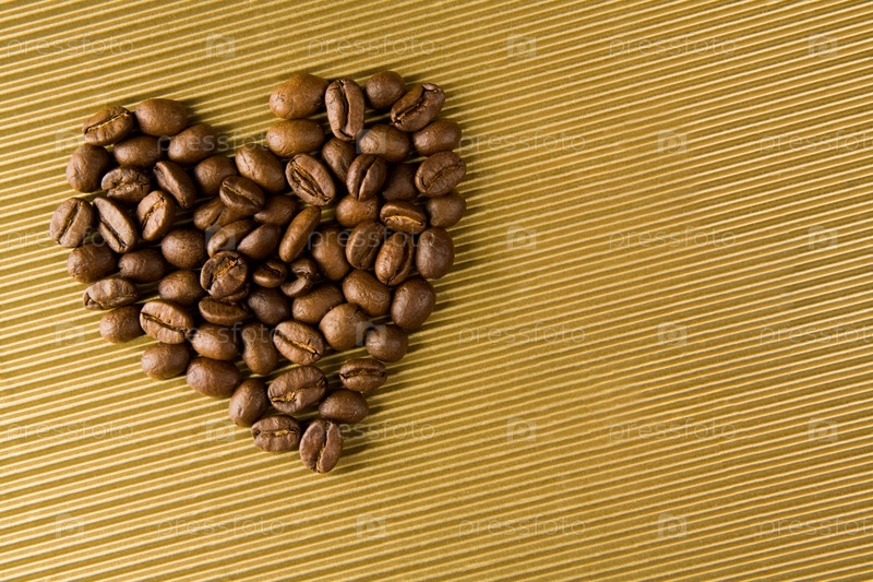 Изображение кофейных зерен, образующих форму сердца на золотом фоне