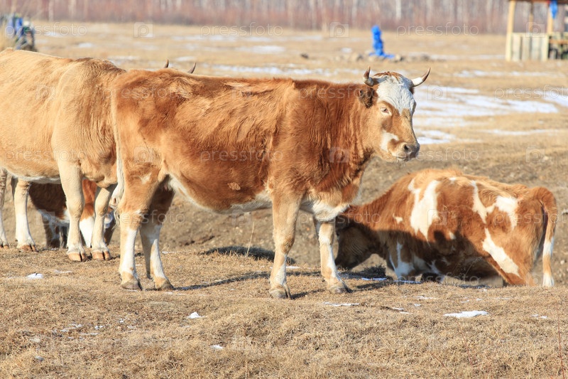 Коровы на зимнем пастбище
