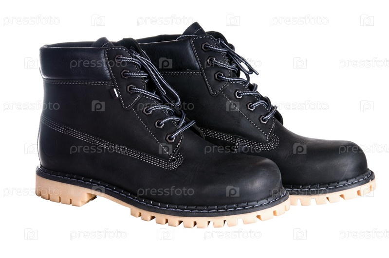 Черные рабочие ботинки, изолированные на белом фоне