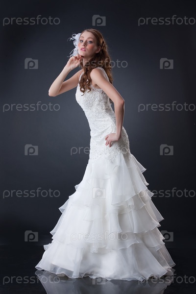 Молодая женщина в свадебном платье на черном фоне