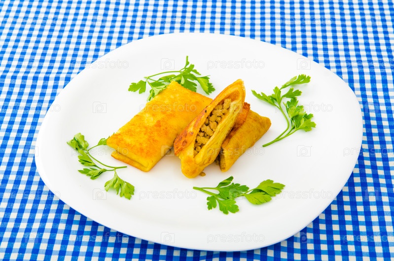 Блины с мясом в тарелке