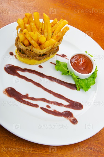Картофель фри с кетчупом на тарелке