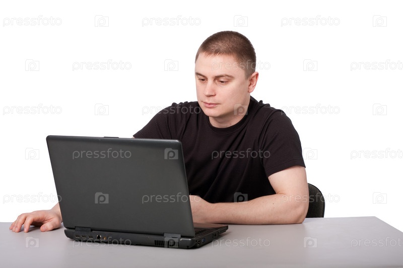 Мужчина сидит с ноутбуком