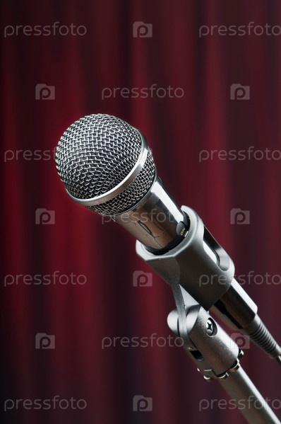 Микрофон на фоне занавеса