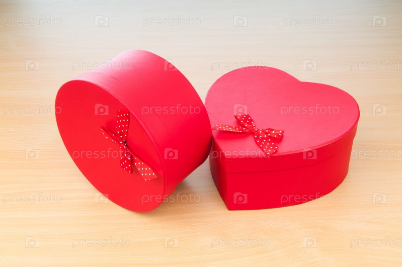 Красные подарочные коробки на столе