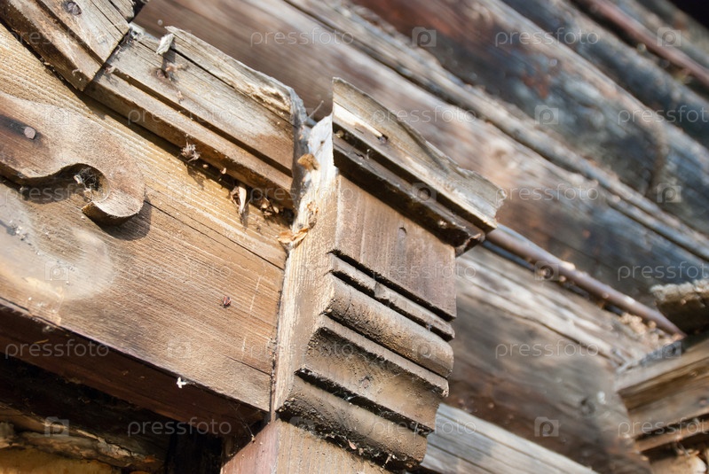 Фрагмент сельского дома из деревянных бревен