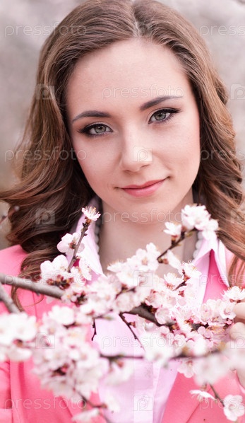 Девушка в цветущих деревьях