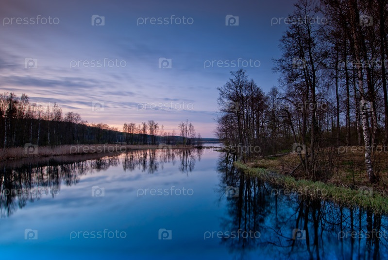 Красивый пейзаж оезра на закате
