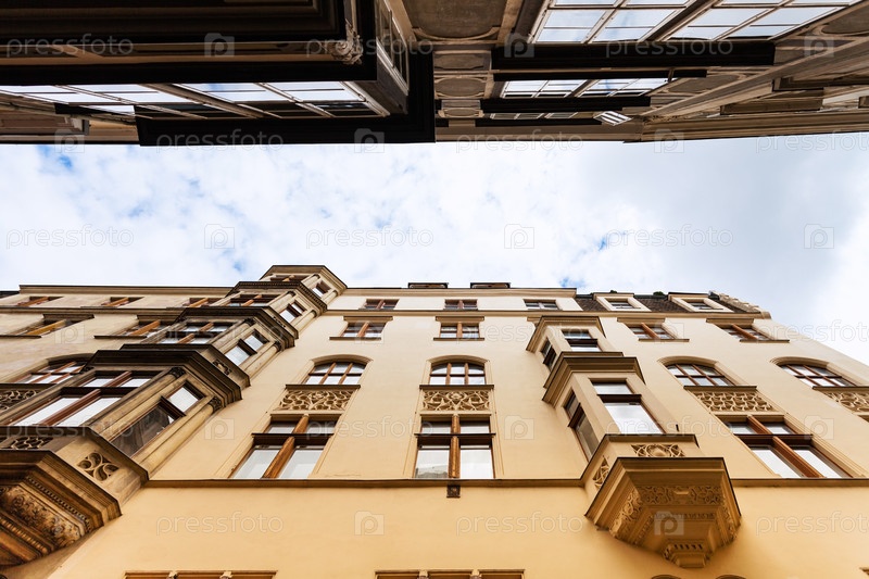 Фасады жилых домов на узкой улице Вены