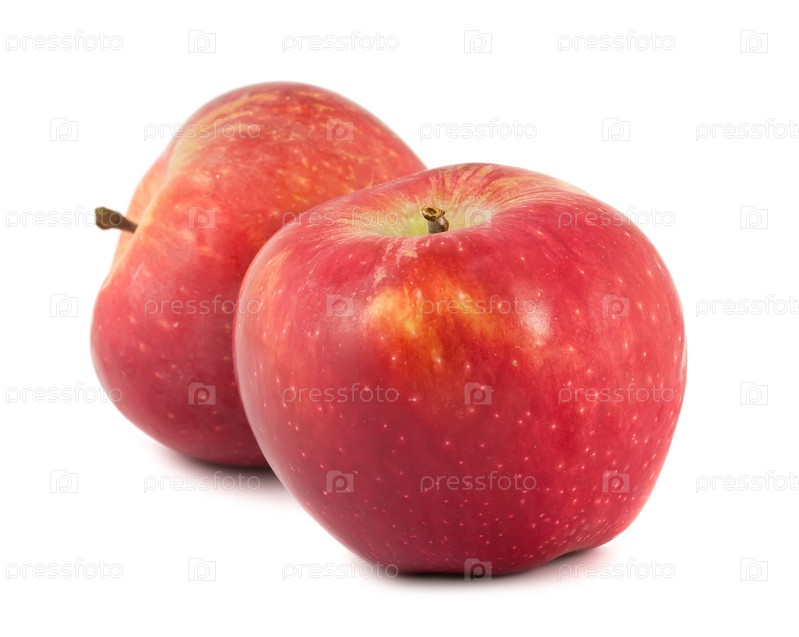 Спелые красные яблоки на белом фоне