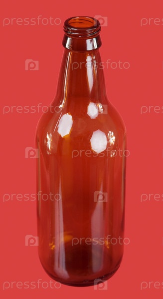 Бутылка из коричневых очков на красном фоне