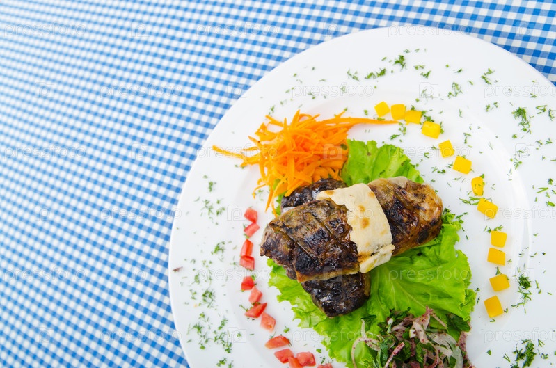 Мясное блюдо - шашлык в тарелке