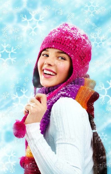 Счастливая девушка в зимней одежде