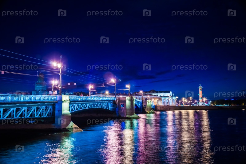 Красивая Ночная Нева, Санкт-Петербург, Россия