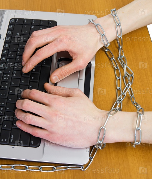 Руки обернулись вокруг серебристой цепи на клавиатуре